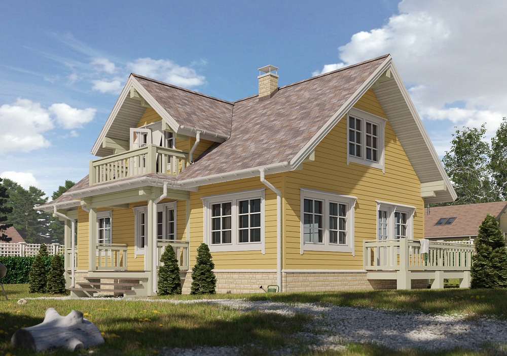 Сайдинг цвета спелого банана подходит для фасадов любой сложности и отлично показывает себя в непростых климатических условиях - не теряет насыщенности, не желтеет. Оттенок особенно красив в классических сочетаниях со светлыми аксессуарами и более темной кровлей.